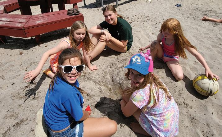 A day at the beach ... Clockwise from top: Counselor Morgan Gengler, Gabriella Ricketts, Willow Kravitz, Reaghan Bauer, Holly Rauth
