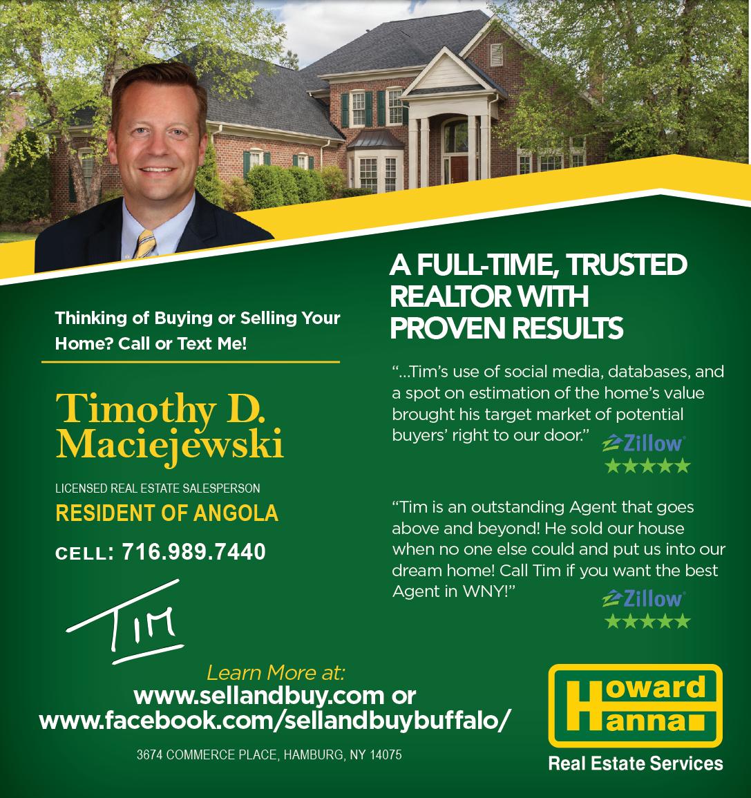 in Angola, Derby, Brant, Farnham and por tions of Irving and Lakeview