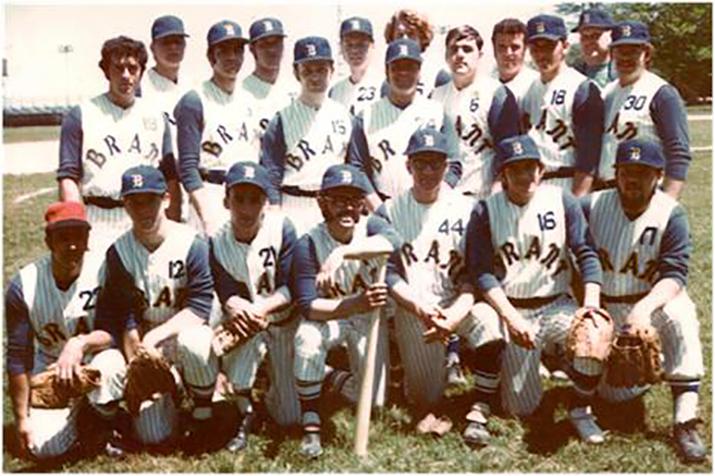A few years back our historical theme was “Baseball” for the Brant Summer Festival display. Brant residents Sandy and Vince Fininzio Sr. submitted this photo for us to scan and use in our banner which was part of the display. The baseball team was sponsored by the Buffalo Evening News and was a hardball team which played their home games at the Brant Town Park. The photo year was 1968 or 1971. Included in the photo are many familiar names from the town of Brant: L-R Front Row, kneeling: Tom Fininzio (27), Floyd Puffer (12), Alex Fininzio (21), ____ Ciminesi (holding bat), John Chiavetta (44), David Chiavetta (16), Doug Giglia (17). L-R Second Row, standing: Tom Cervola (19), Vince Fininzio Sr. (13), Tom Gerace (15), Joe Giambrone (24). L-R Back Row: John Gomoka, Ron Burgess, Wayne Falk (23), Gary Mirusso, Lenny Pero (6), Peter Gugino, Joey Morgano (18), Don Rice (Coach), David Taylor (30).