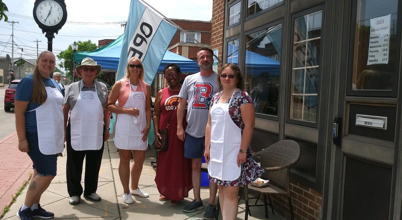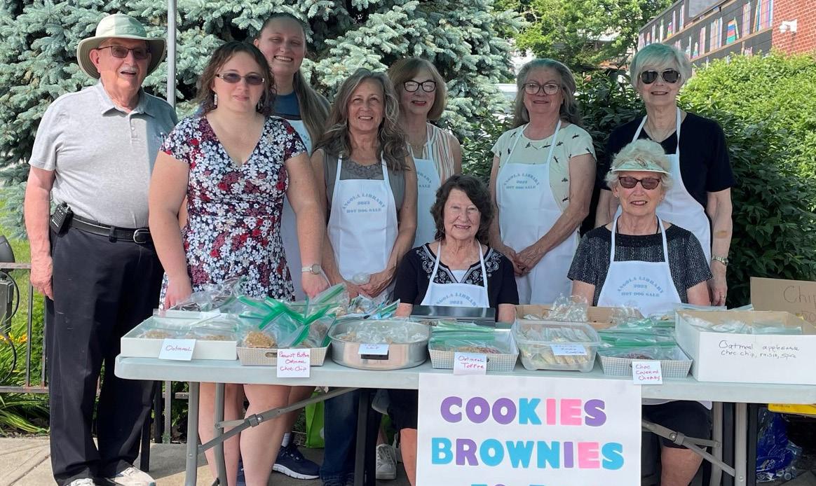 It was a beautiful summer day on July 1st when our Angola Public Library and Library Board of Trustees hosted our Annual Hot Dog Sale and corresponding Book Sale. The sales were most successful with combined proceeds exceeding $800.00! The entire community came out in full force as they always do to support the Library. Our cooks were Village of Angola Officials and included: Tom Whelan, John Wilson, John Dybowski, and Val Stonitsch. Val is also the village liaison to the Library Board. Also supporting us that day were members of the Central Library, which is located in Buffalo, N.Y. The bake sale was also a popular stop and people were very generous either by donating the baked goods or purchasing them. We also had tickets available for the Afghan Raffle for those interested; the winner will be drawn and announced at an upcoming Harvest Dinner in fall of this year. The gorgeous afghan was handmade by Jackie Haderer (Angola