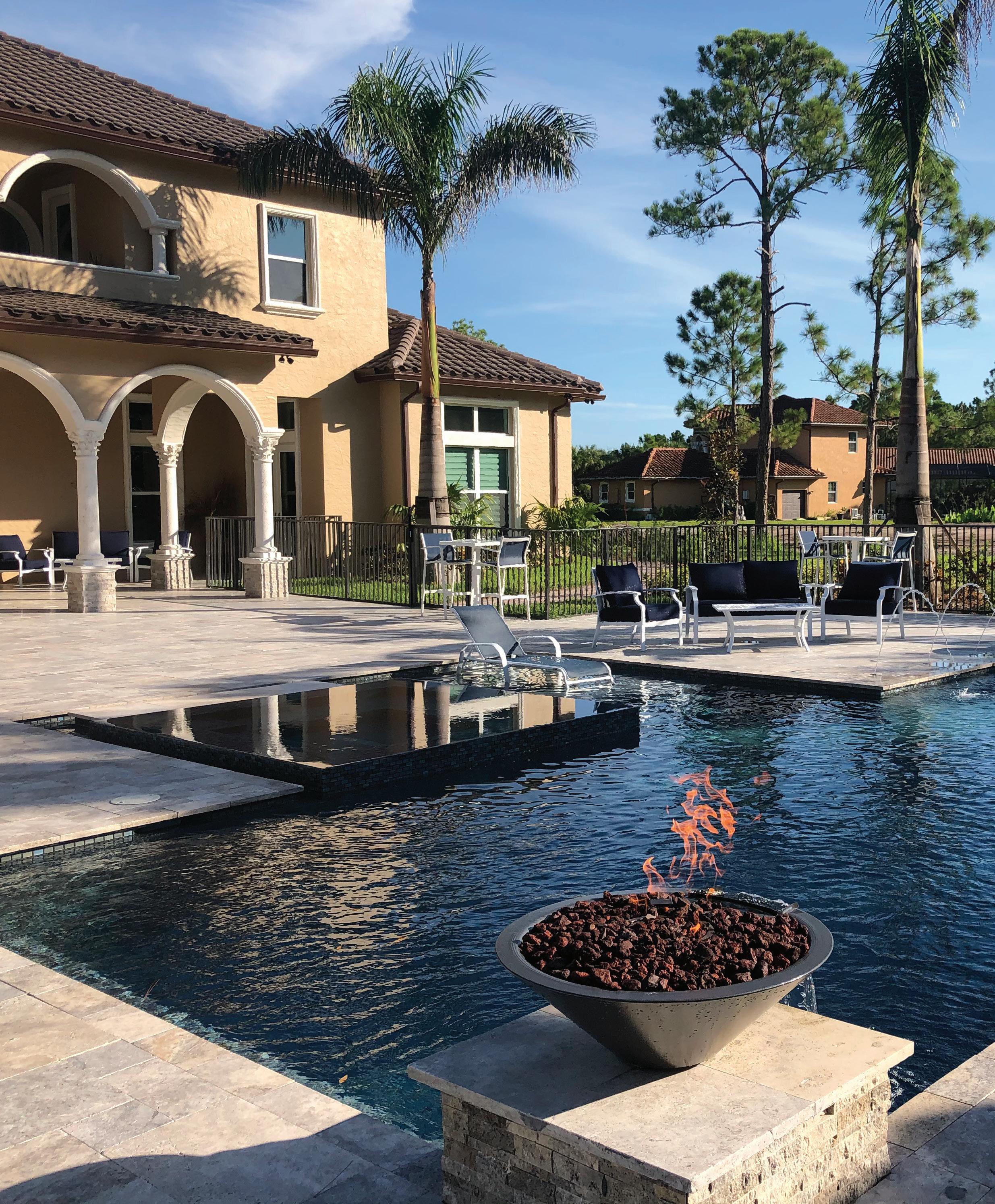 At A&G, we have been fortunate to build a wide variety of pools and fountains for all kinds of clients. We have designed and built competition swimming pools, lap pools, hotel pools, homeowner association pools, pools in and on top of multistory buildings, beach entry pools, tropical pools, geometric pools, entry fountains and thousands of backyard pools. The PARADISEProcessParadise | Summer, 2022 • Volume 1 • Issue 124