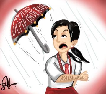 Nakasaad sa bagong alituntuning inilunsad ng Department of Education (DepEd), kindergarten na lamang ang suspendido ang klase na dati’y hanggang senior highschool pa sa oras na nakataas na sa tropical cyclone wind signal (TCWS) no. 1 ang lugar. Ngayon upang pamsamantalang makansela ang klase ay kinakailangang nasa TCWS no. 2 para masama ang junior highschool at TCWS signal no. 3 pataas naman para makansela lahat ng lebel. Bilang isang mag-aaral, hindi ako tumututol sa kaisipang hatid ng alituntuning ito. Bawat estudyante ay may sapat na kakayahang pumasok lalo na kung hindi naman maperwisyo ang ulan na dala ng bagyo. Mainam na kontrolin natin ang ating mga sarili at iwasan maging isang malaking pabigat at magmatigas na maging tamad. Bukod sa TWCS, mayroon ding kakayahan ang lokal na pamahalaan na magdesisyon kung hanggang anong lebel ng klase ang suspendido base sa rainfall signal na ibibigay ng Philippine Atmospheric Geophysical ang Astronomical Services Administration (PAGASA).