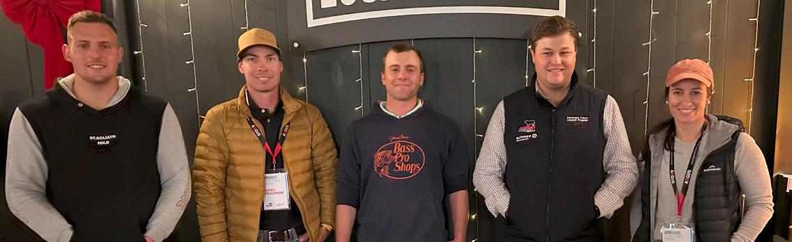 Top image: Erica Halliday, Brad Gilmour, Scott Wright at the Zoetis Angus National Conference, Bottom image: Diana Wood, Erica Halliday, Jake Phillips, Simon Quilty at GenAngus