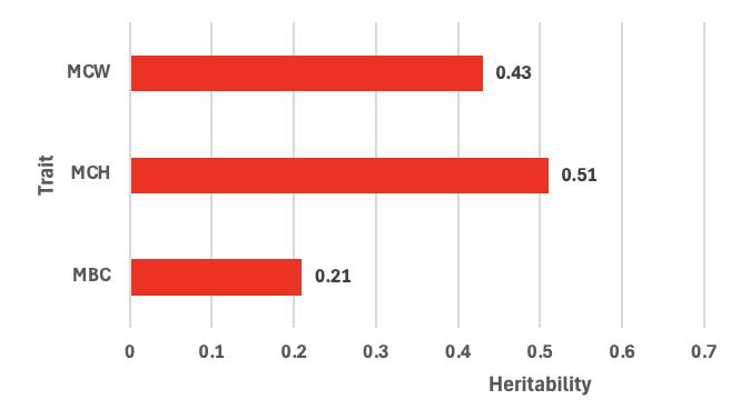 3. Heritability of Mature Cow Weight (MCW), Mature Body Condition (MBC) and Mature Cow Height (MCH).
