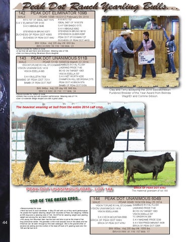 VIS IONTOPLINE ROYAL STOCKMANGAMBLES ROYAL FLUSH LAGRAND PRIDE 7140 VISION UNANIMOUS 1418 BOYD ON TARGET 1083 VISION EDELLA 665 VISION EDELLA 337 S A V NET WORTH 4200 S A V BULLETIN 7904 PEAK DOT 701X CHAMPION HILL GEORGINA 2175 BAMBIE OF OF PEAK DOT 769T PEAK DOT HOBSON 57N BAMBI BAMBI OF PEAK DOT 515N