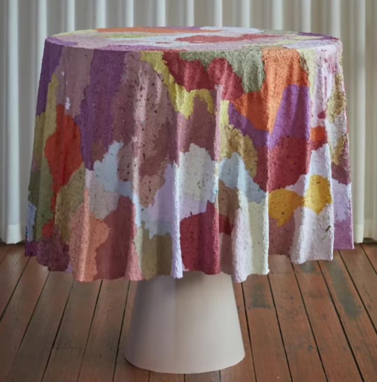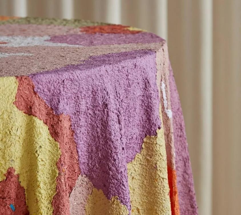 Rearranging the material library coordinating with suppliers to collect outdated samples. Additionally producing a vibrant table cloth designed from waste paper that was exhibited during Melbourne Design Week 2023.