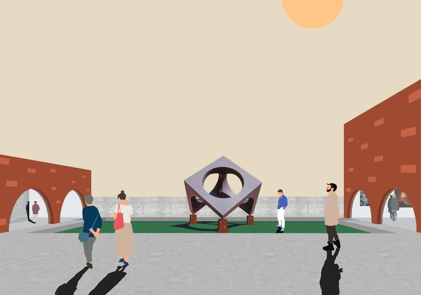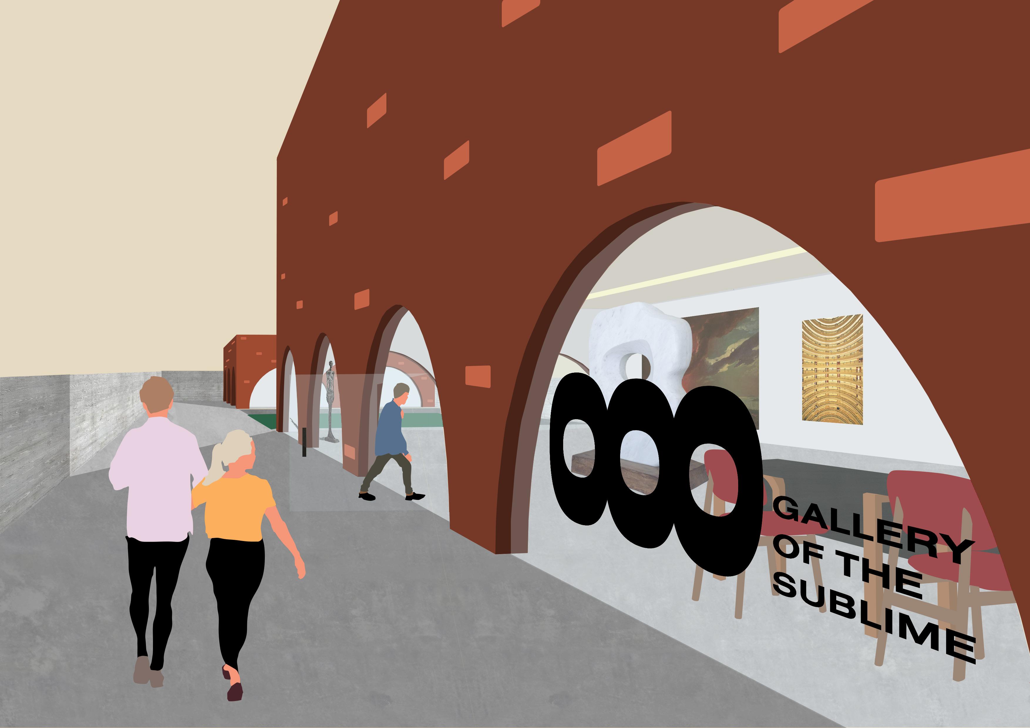 Beginning from designing the gallery’s visual logo the design plays on moments of sight that develop a sense of anticipation for what is beyond the known. The gallery is divided by two exhibition pavilions where archways build a tension between the viewer and object that travels between a blurred space. By pairing the raw mass of bricks with the transparency of glass a negative space casts an overwhelming form directing audiences towards the interior gallery.