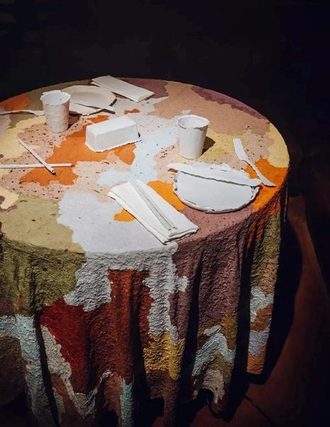 A set of utensils were cast from left over waste to adorn that table during the exhibition