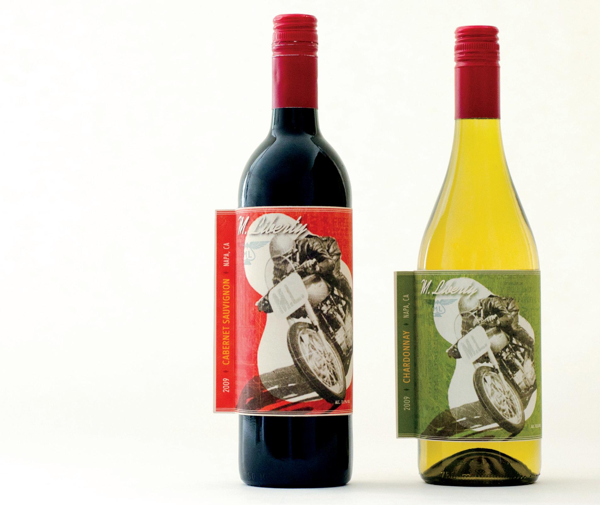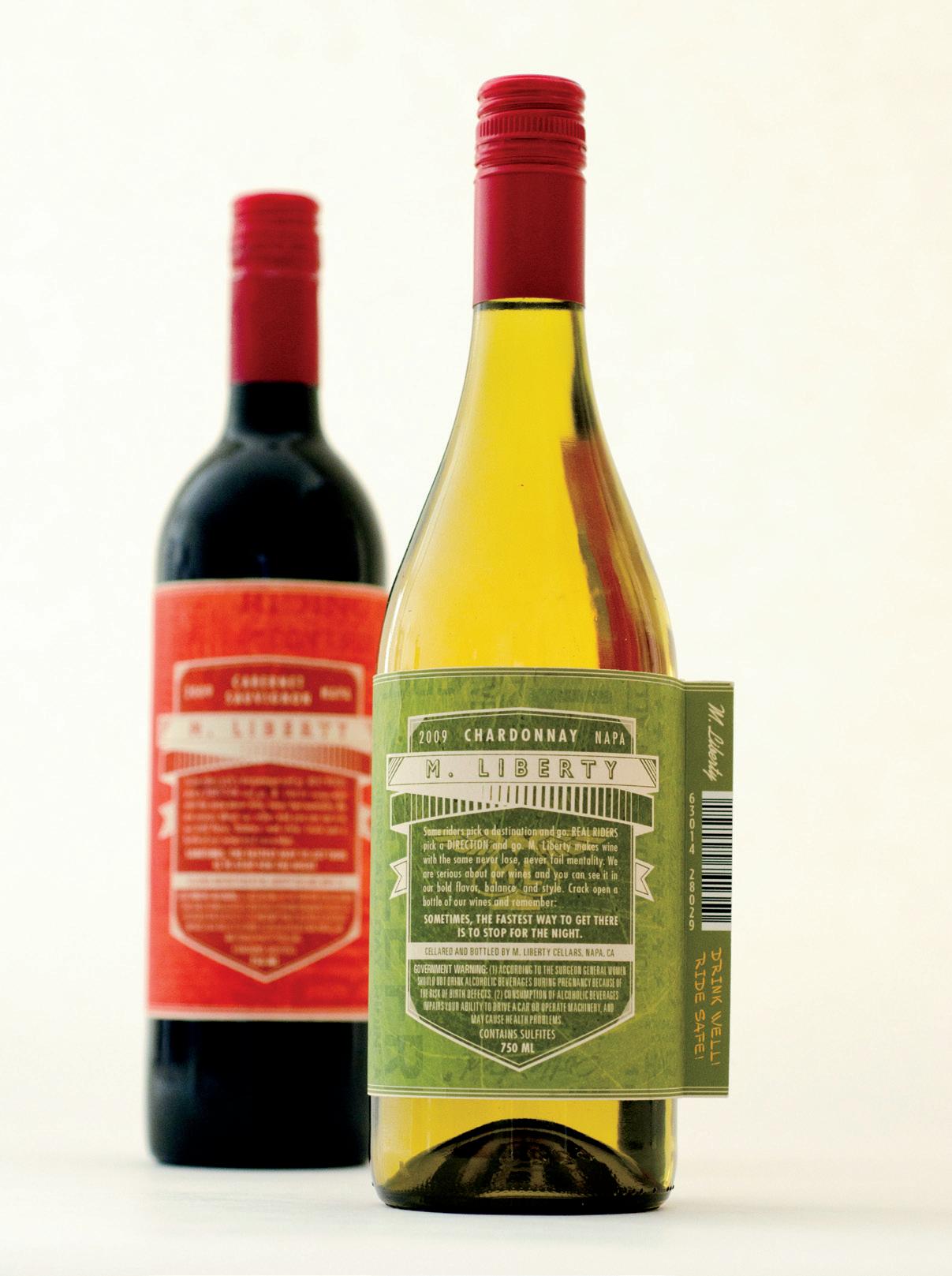 M. LIBERTY WINES: A VENGEFUL NONCHALANT WINE THAT DOESN’T CARE TO BE LIKE OTHER WINES. THE LABEL LOOKS EFFORTLESSLY UNIQUE, EXCITING, AND INVITING. OTHER WINES CAN TRY TO LOOK STUCK UP AND STIFF, BUT M. LIBERTY JUST STAYS BAD AND COOL.
