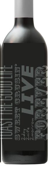THE BOTTLE’S PAPER LABEL FEATURES TEAR-OFF TAB THAT OTHERS CAN KEEP AS A REMINDER TO PURCHASE LATER. ON THE HIGHER-END BOTTLE DESIGN, WE HAVE A RUSTIC “BEEN THROUGH HELL” EMBLEM WITH CLEAN BOLD MODERN DESIGN STATING EXACTLY WHAT WINE IT IS THE WAY ONLY M. LIBERTY CAN SAY IT.