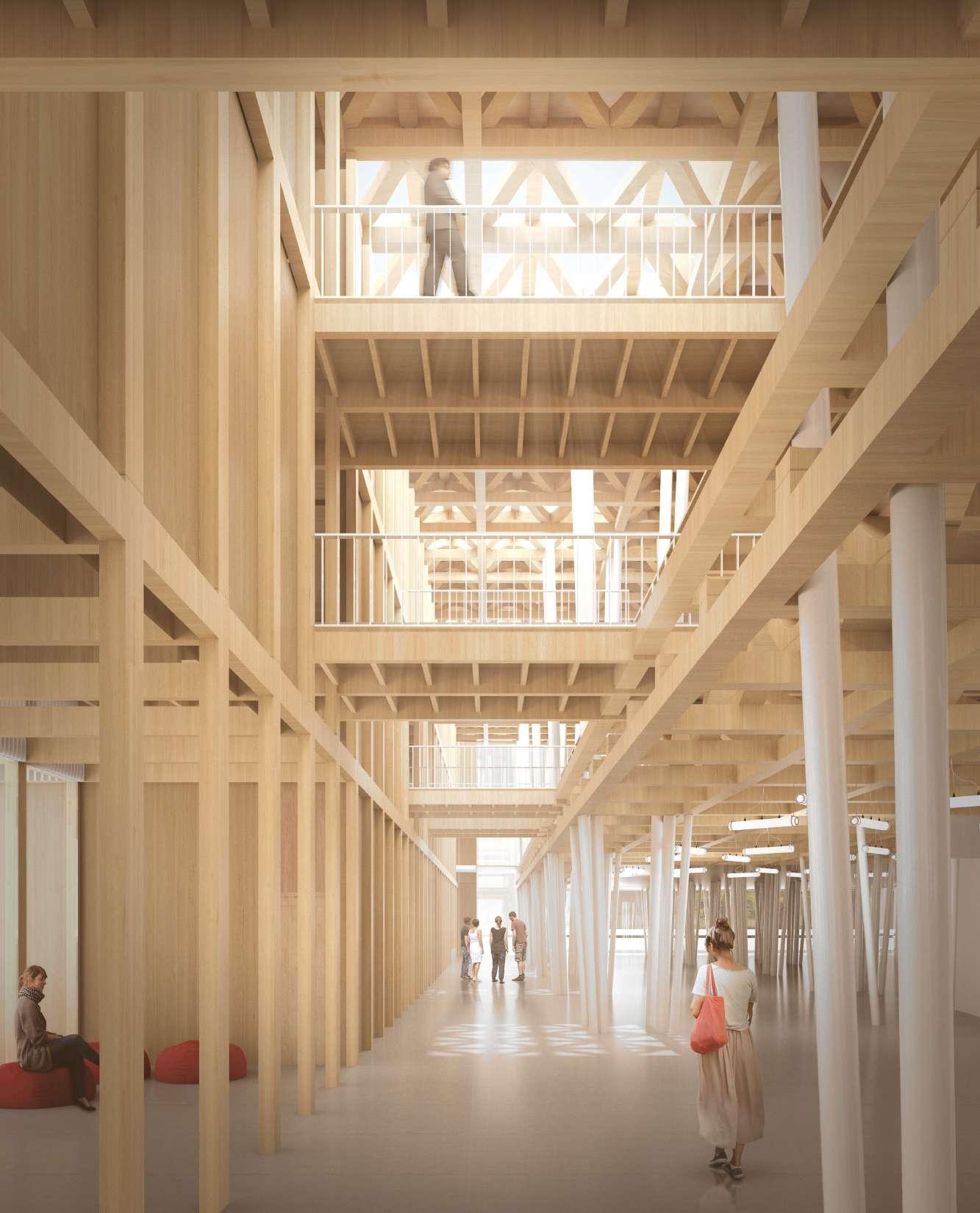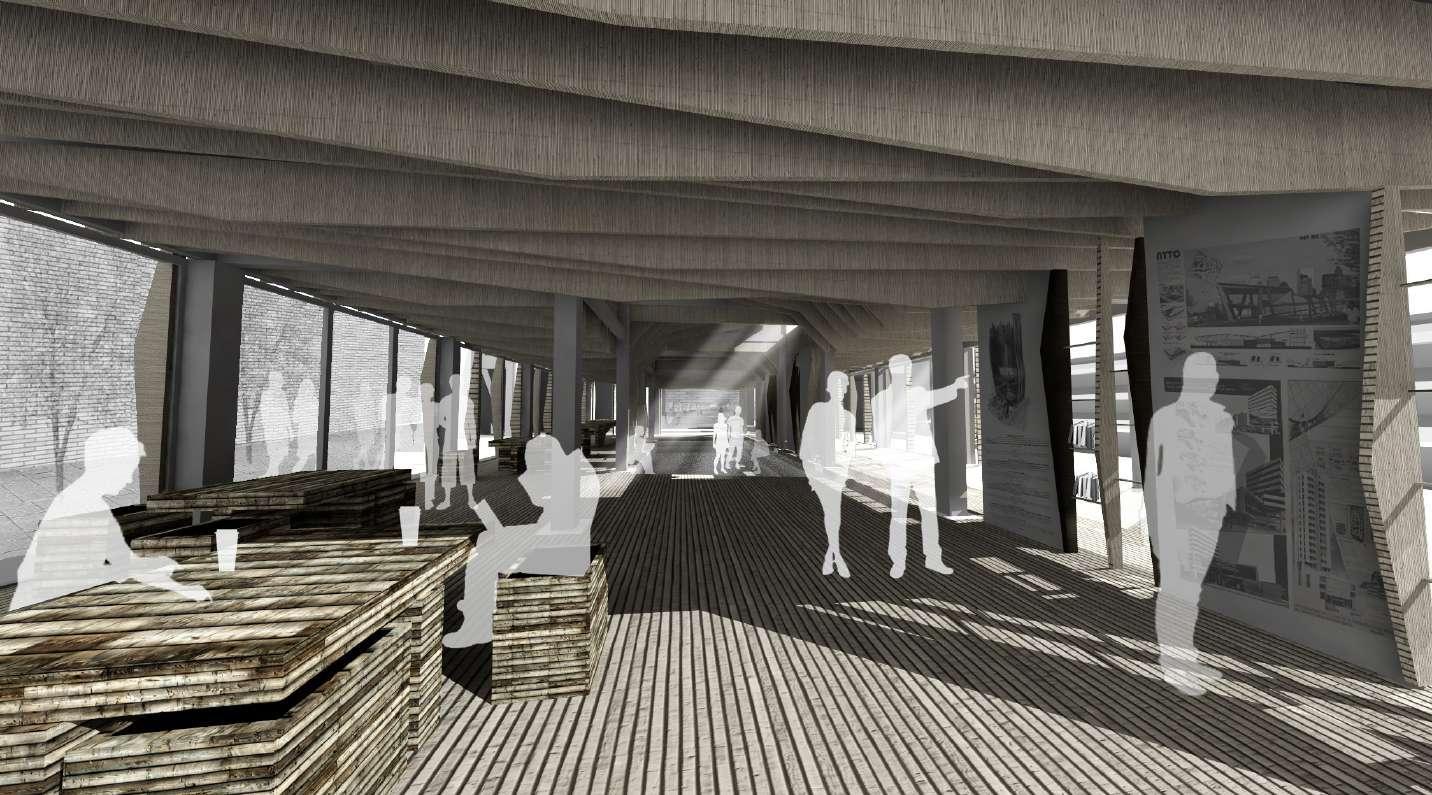 Este caso de la Facultad de Educación se pensó de la manera en que el programa tuviera la capacidad de cambiar con el tiempo de acuerdo a las necesidades de la universidad, esto se puede llevar a cabo con la propuesta que se explicará más adelante. Una de las propuestas para el programa de este proyecto es generar espacios de encuentro en la facultad, ya que la vida universitaria se basa también en generar encuentros, con tus amistades y compañeros, es por eso que la propuesta de pasillos es mayor a la requerida como mínima para un pasillo, ya que la vida de los pasillos es un elemento fundamental en las universidades junto con los colegios, la vida sucede en los pasillos. Imágenes: @g2.render
