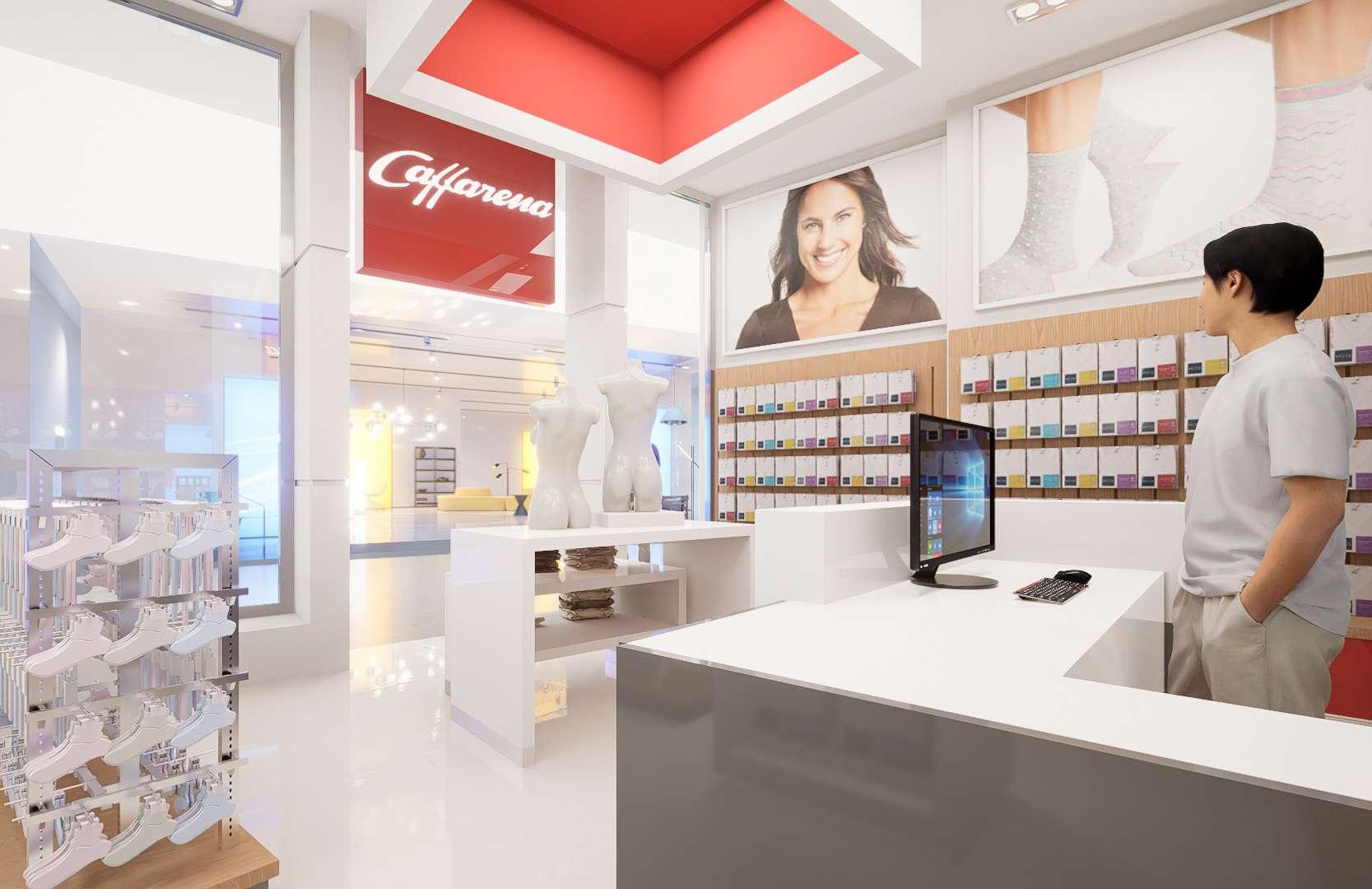 Diseño de todo el interior del recinto, integrando los diseños propios del mobiliario de Caffarena y diseño de todos los mobiliarios como la el mueble de la caja, estanterias, etc. Imágenes: Marco Opacic