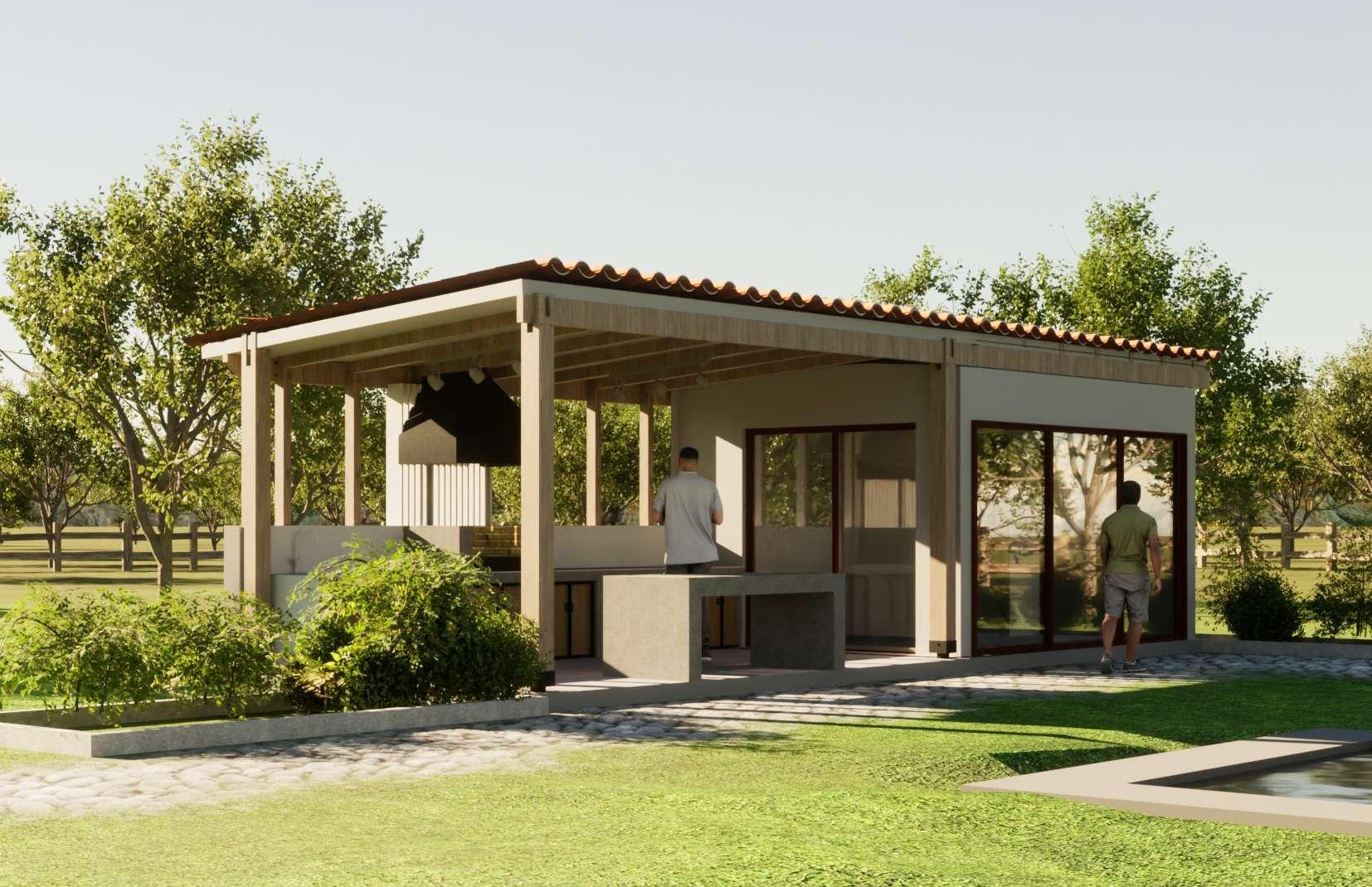 El proyecto consta de una casa de 144m2 en albañilería armada, tabiqueria de metalcom junto con la estructura de techo. Un quincho de 32m2 de estructura mixta, madera la parte exterior y metalcom los espacios internos.