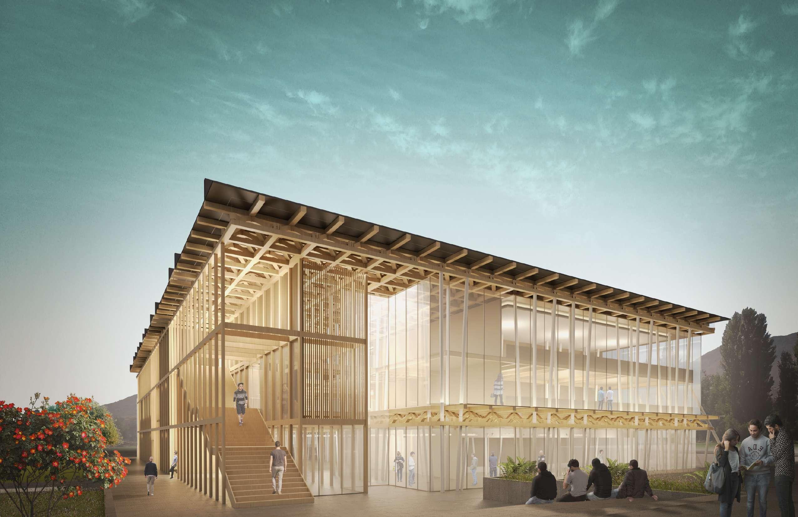 Edificio de Apoyo Estudiantil. Facultad de Educación, Campus la Castilla, Universidad del Bío-Bío, Chillán. El vacío como espacio de encuentro en la educación.