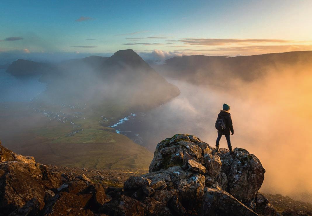 uf halber Strecke zwischen Island, Norwegen und Schottland lugt auf 62° nördlicher Breite eine Handvoll vulkanischer Inseln aus den Fluten des Atlantik. Ihre geografische Lage isoliert sie vom Rest der Welt und das raue Klima bringt hier feste Charaktere hervor. Dennoch liegen die Färöer nicht am Ende der Welt, sondern vielmehr am Rande Europas. Die 18 Hauptinseln erstrecken sich auf einer Fläche von 1400 km2. Sie scheinen einfach in den Ozean geworfen worden zu sein und sich gegen Wind, Gezeiten und Unwetter einzuigeln.