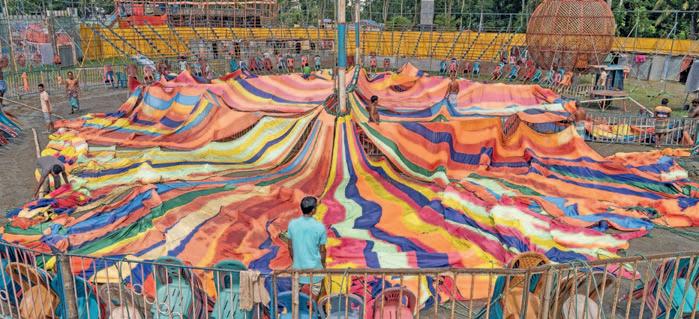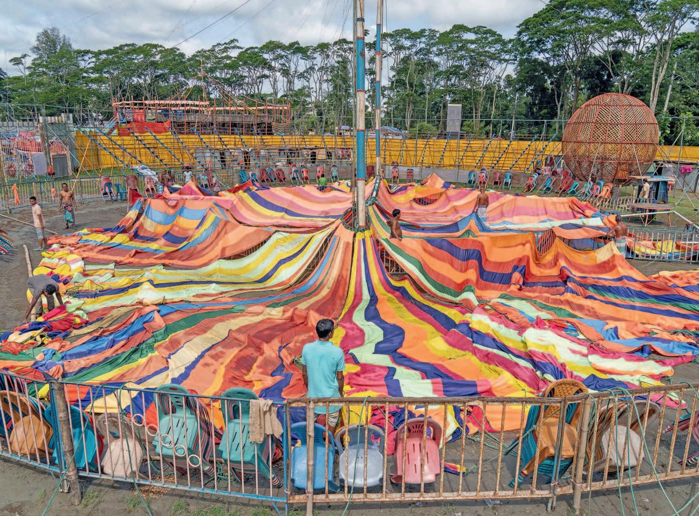 Die Mitglieder des Lion Circus bilden eine grosse Gemeinschaft. Rund 70 Personen beschäftigt der Zirkus das ganze Jahr über, darunter um die dreissig Gaukler und Artisten, die täglich drei Vorführungen absolvieren. Auch die siebenjährige Tuntuni – Tochter der Seiltänzerin Rosina und des Clowns Babul – gehört dazu. Sie geht nicht zur Schule, die Millionen von Schülern in den Koranschulen beneidet sie dennoch nicht. «Die anderen Kinder hier sind wie meine Brüder und Schwestern», verkündet das Mädchen,