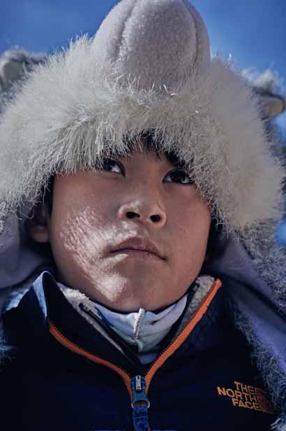 Ang Temisgam, 3500 mètres d'altitude, quelques poignées d'habitants. Un village comme un autre au Ladakh, région himalayenne du nord de l'Inde, à la frontière de la Chine et du Pakistan. Le sol est sec, le ciel bleu cobalt. Sur le mur d'une maison, un panneau indiquant «Homestay» est suivi d'une flèche. Une petite femme aux cheveux noirs tressés et au visage sculpté par le vent, le soleil et le rire nous accueille, enveloppée dans sa sulma, la robe traditionnelle de laine sombre.