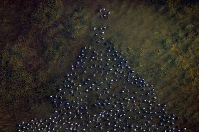 «Pyramid of Scaup» – Un immense vol de canards plongeurs dessine brièvement une forme pyramidale au-dessus des lacs côtiers des Everglades. Highly Commended, Wildlife – Birds