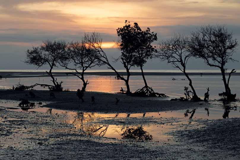 «The Sacred Mangroves Sentinel» – À l’aube, les racines respirantes des mangroves composent une scène presque spirituelle sur la plage de Walakiri. Highly Commended, On the Ground