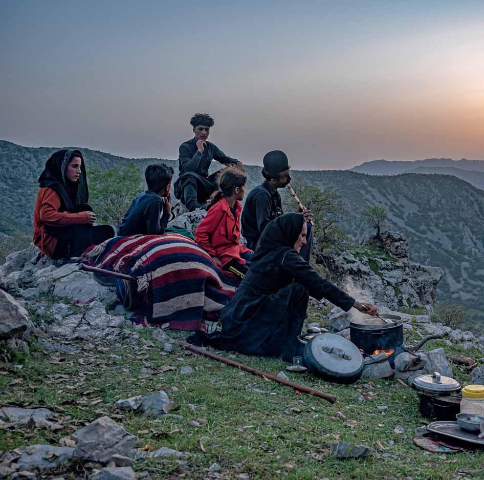 Silencieuse, encore à moitié endormie, leur mère Setareh se dirige droit vers le foyer et attrape ses casseroles. Seules les plus jeunes, Azita et Arghavan, obtiennent cinq minutes de répit avant d’être elles aussi happées par la marche du jour qui se lève. Après le thé habituel, la famille charge les maigres biens et les chevreaux nouveau-nés sur les bêtes de bât et se met en route.
