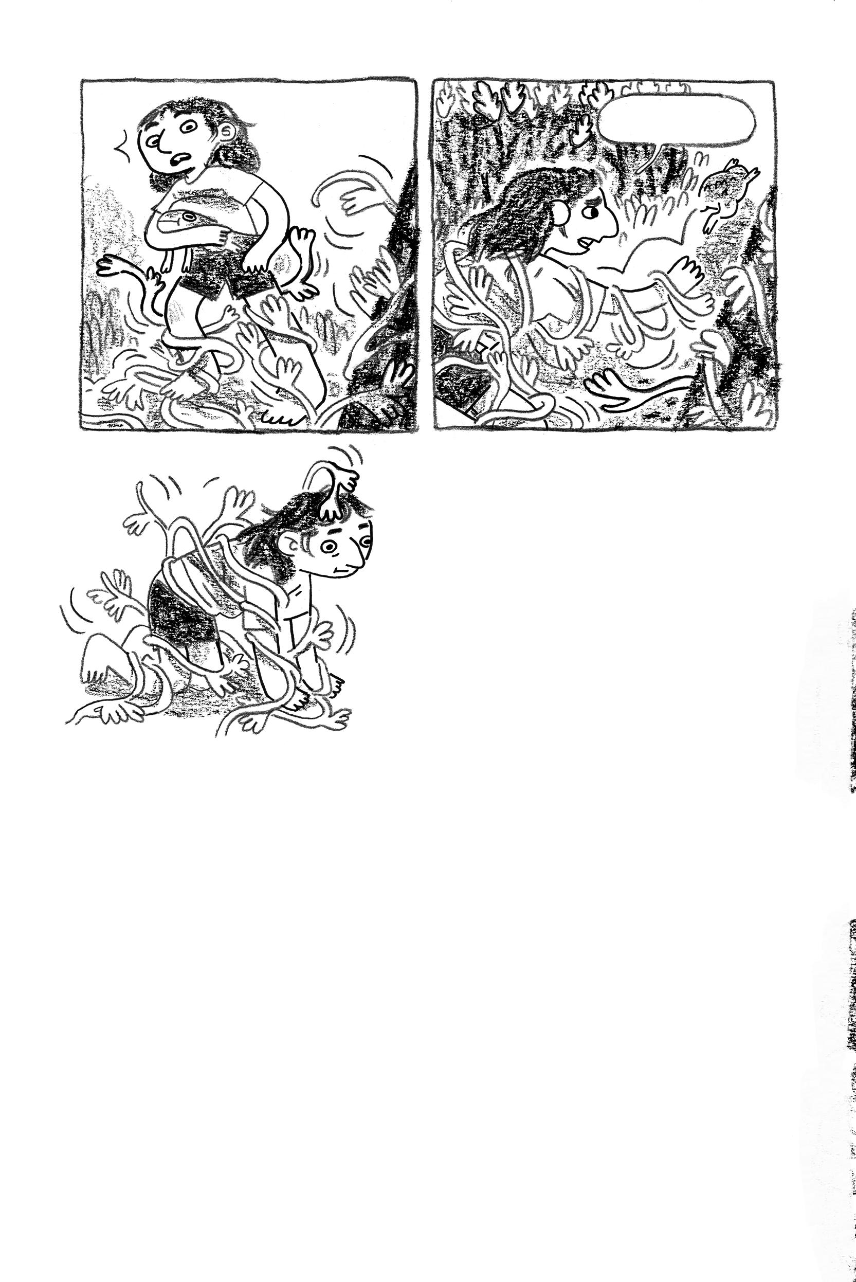 Wait, what if she stole my teeth? I looked behind me to wave to my friends for rescue, but the bushes were totally empty! They fled without me! They were gonna let her shove snakes down my throat!