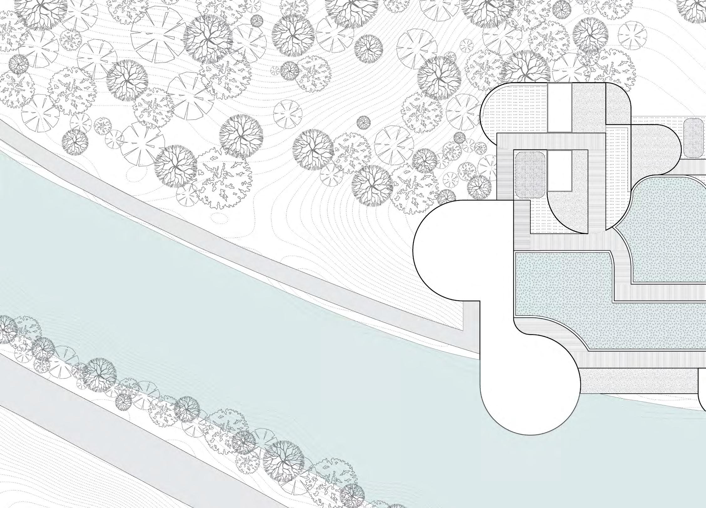 Situated along the Erie Canal, the project serves as a water purification facility and educational and recreation center. The concept of individual activity areas that are divided based on program serves as a primary design idea. The facility contains 4 built structures: an indoor water purification treatment, a lab and educational building, and two recreation spaces.