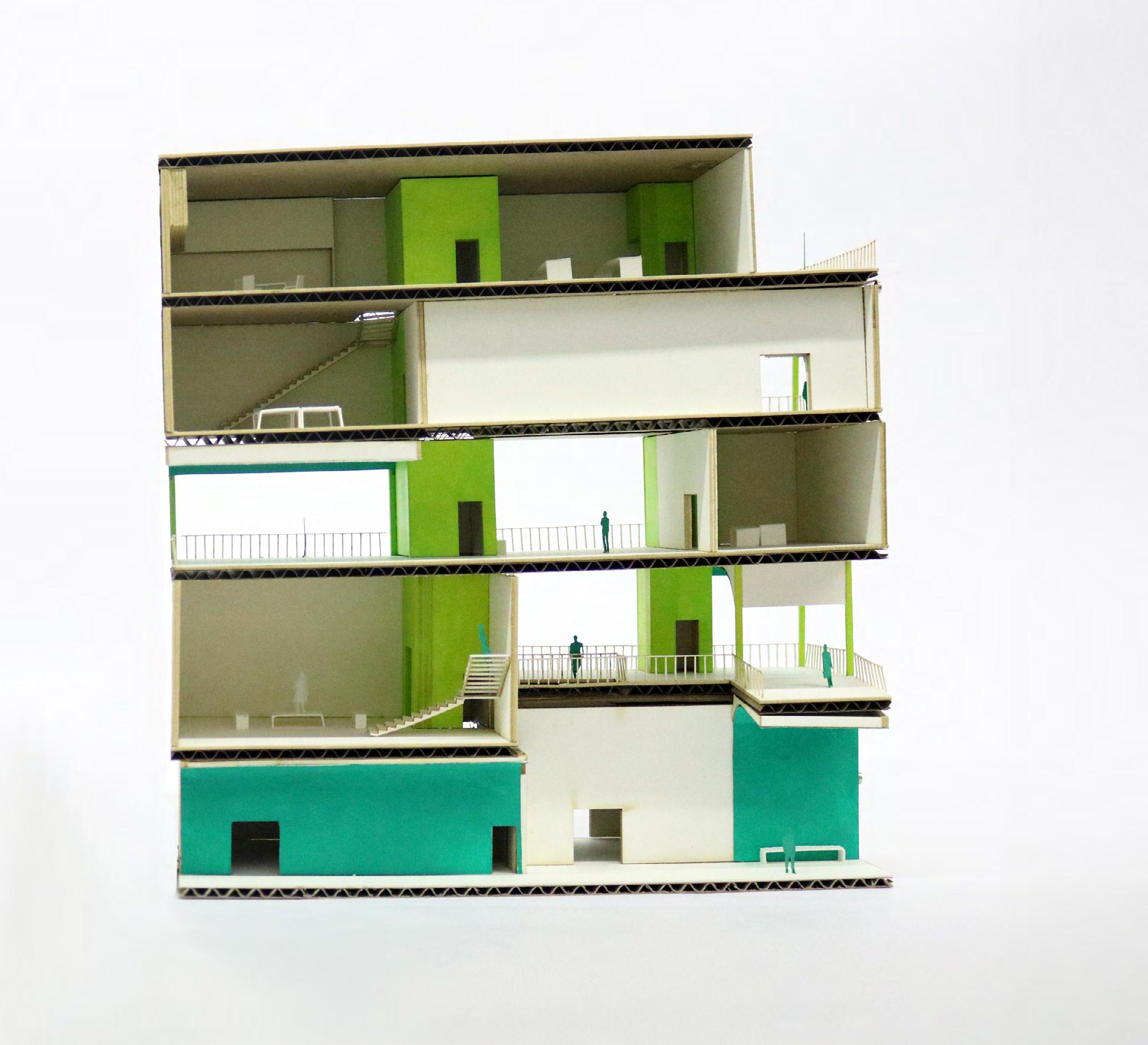 1/8” Building Model opened in Section highlighting open and double-height spaces