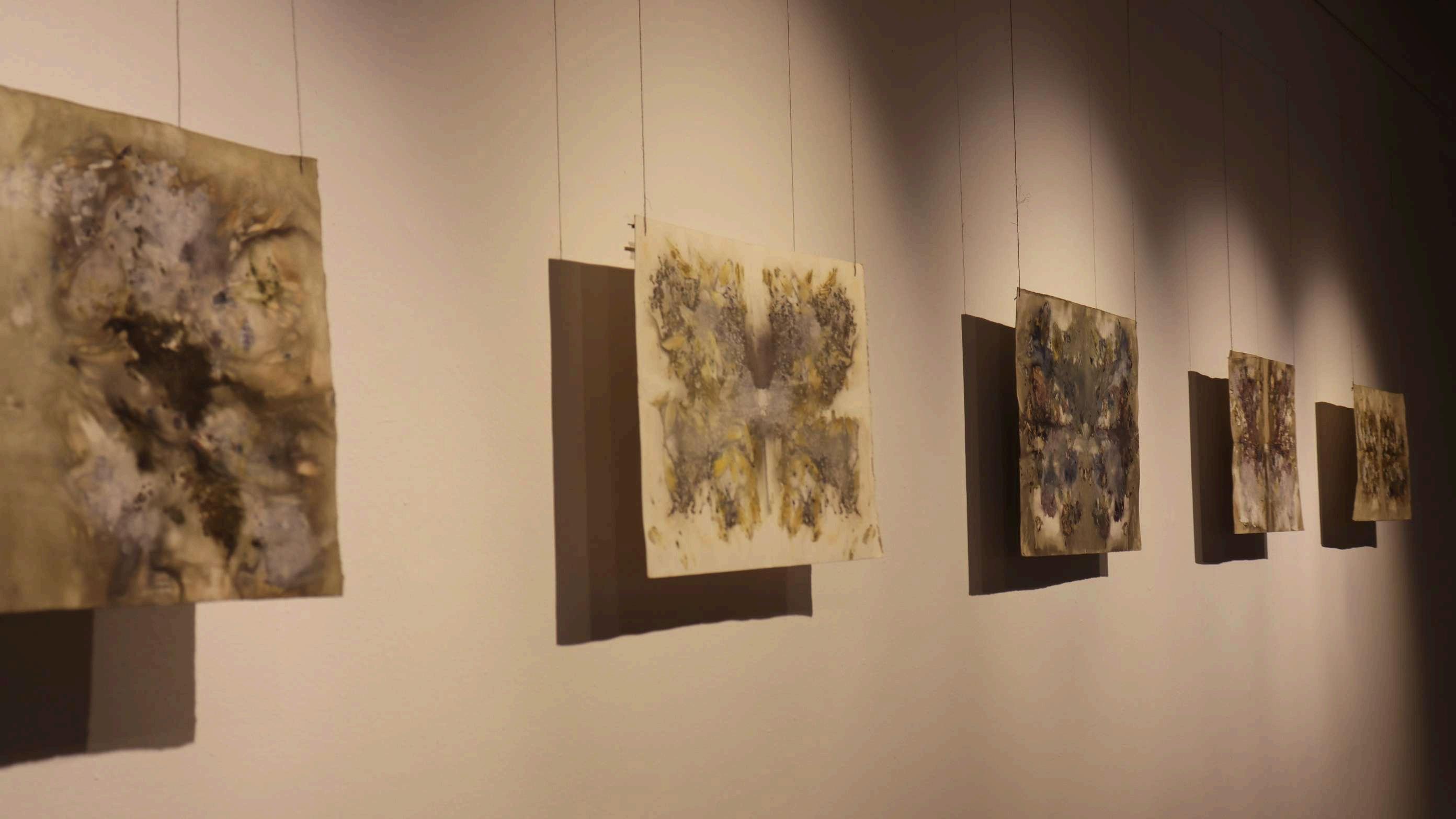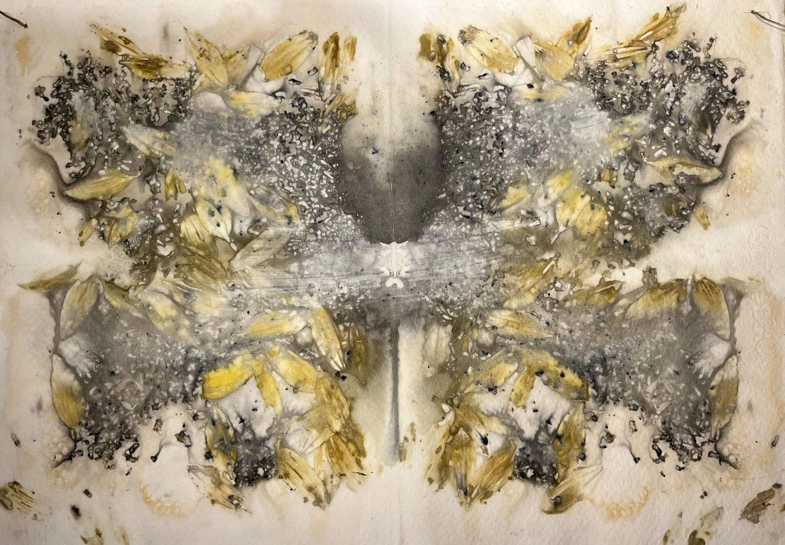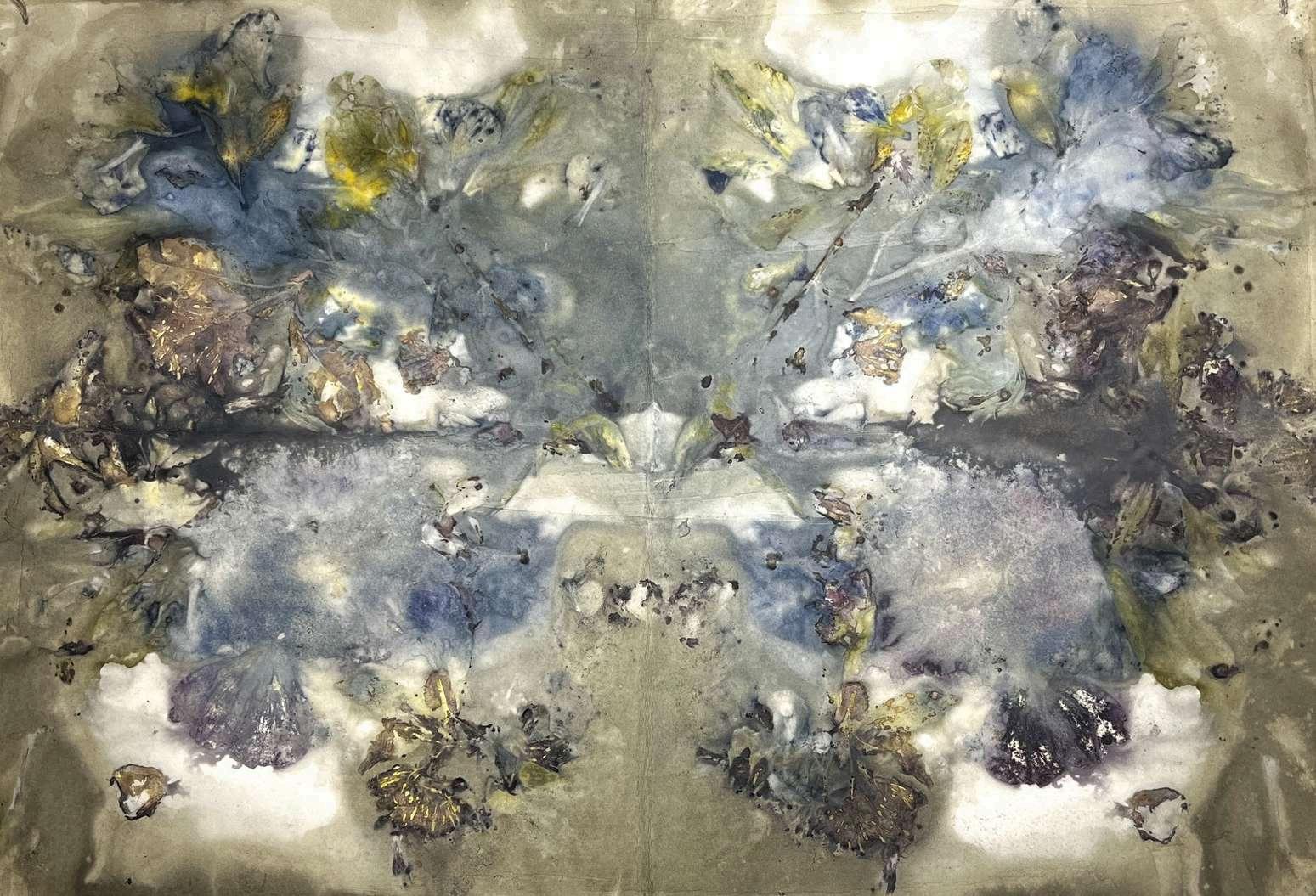 Serie de impresiones botánicas de simetría bilateral sobre papel de algodón