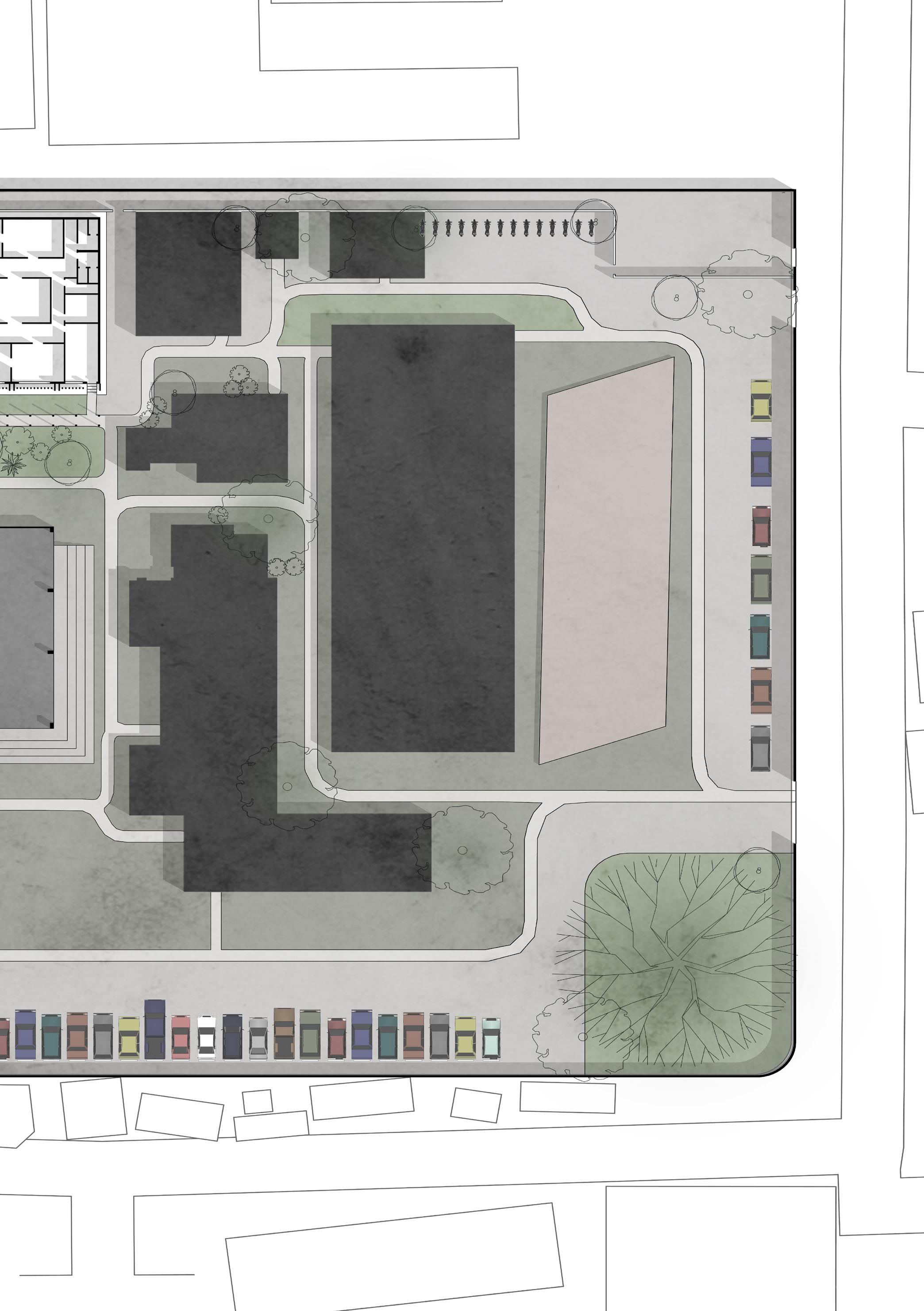 The following diagram shows the relationships of existing with proposed building massing. The placement of these programs considering the proximity between each other. Hopefully, with this placement, programming can become more integrated and blend to form a harmonious gradation.