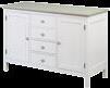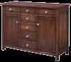 Queen Anne Buffet 30 1/2” H x 62” W x 17½” D Behind Center door is 1 drawer and 1 nonadjustable 3/4 depth shelf. Behind each End door is 1 nonadjustable ¾ depth shelf Cherry