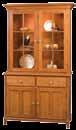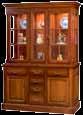 Queen Anne China 52” H x 63” W x 17½” D Touch light 2 glass shelves with plate grooves Mirrored back Cherry