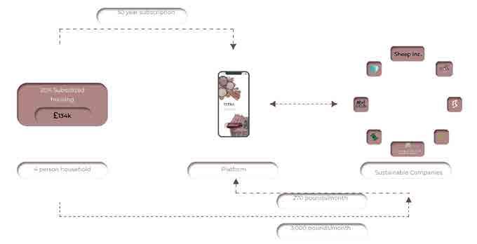 The platform connects residents to a sustainable lifestyle by subscribing them to purchasing sustainable lifestyle products and binding them to a contract that pushes them to reduce individual emissions.