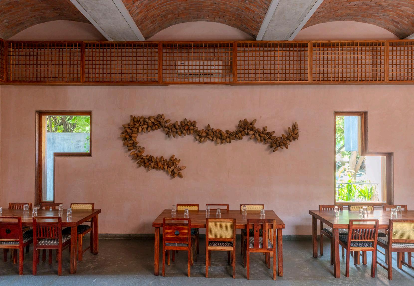 • The chairs and tables were insipred by traditional south indian wooden furniture. The varying designs in the backrest add a modern touch.