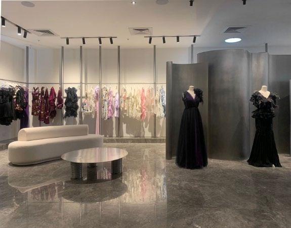 • The design of the flagship store incorporates unique spacial planning, accentuating edgy forms and daring colours, to complement the designer’s clothing collection.