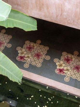Auspicious days call for Kolam designs on the porch, filled in with vibrant flower petals.