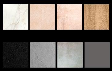 Black granite | Metal | Wood stain