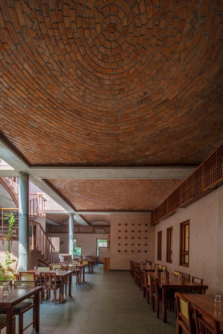 •The design emerged from the want to implement brick shallow domes and vaults, as well as exposed load-bearing walls, minimizing the use of concrete and steel.
