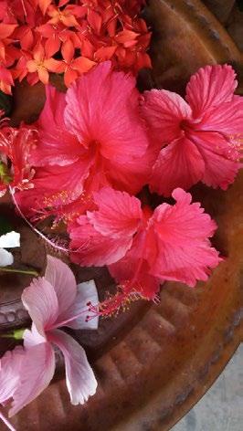 The hibiscus, a staple in every garden, add a third dimension with the kolam as its canvas.