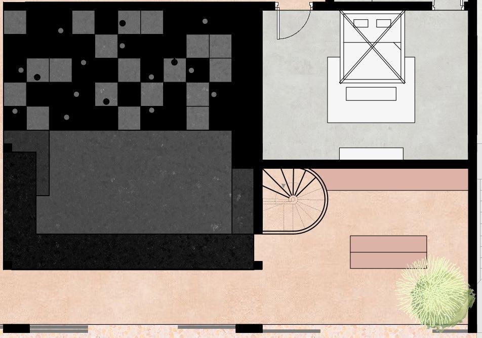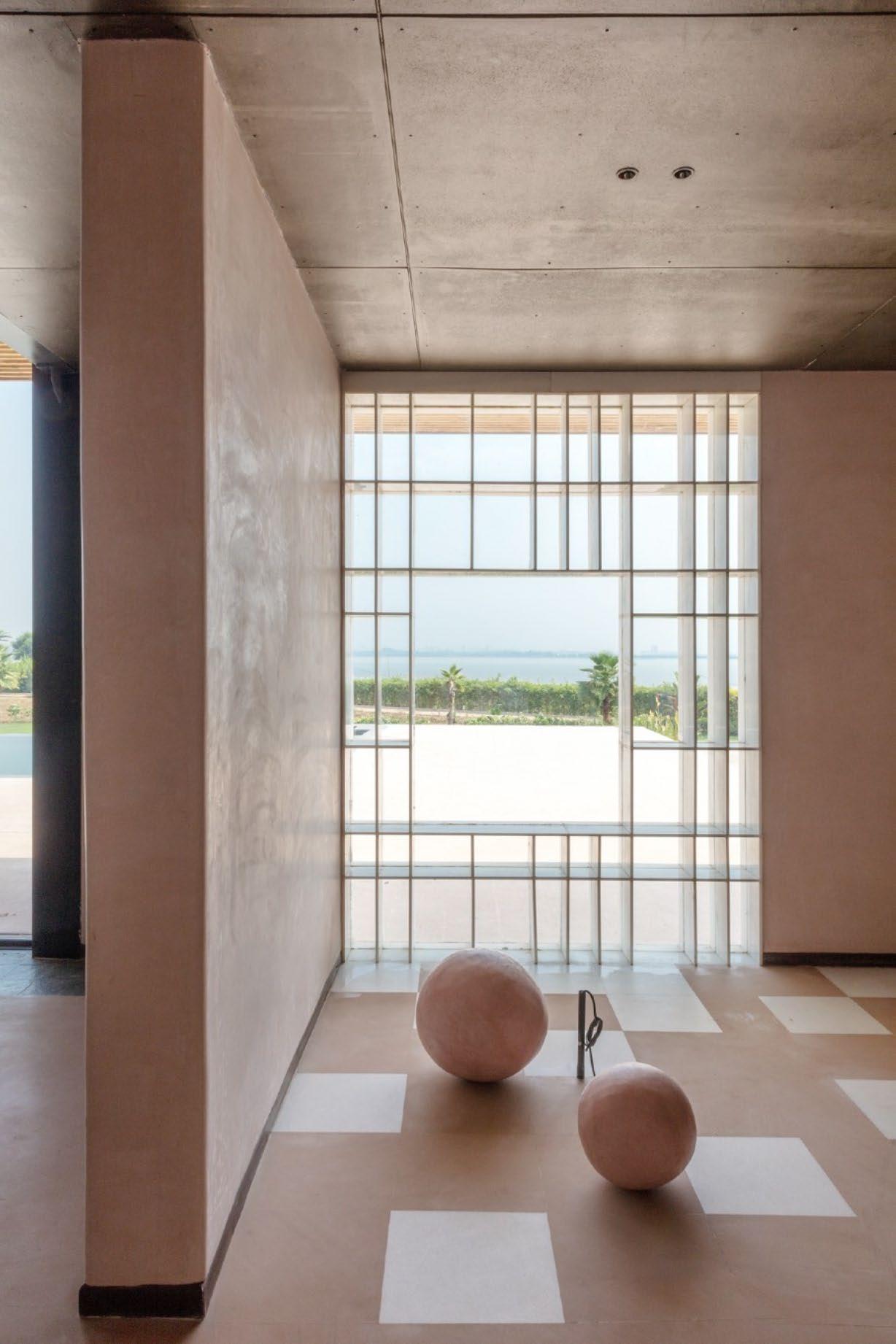• The color and material palette is drawn from the natural Indian stone used for flooring-- Pink Sandstone and Grey Kota Stone.
