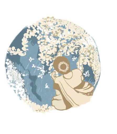 A muted yet striking piece, the Ugadi rug is a tribute to the familiar joys of a blossoming mango tree.