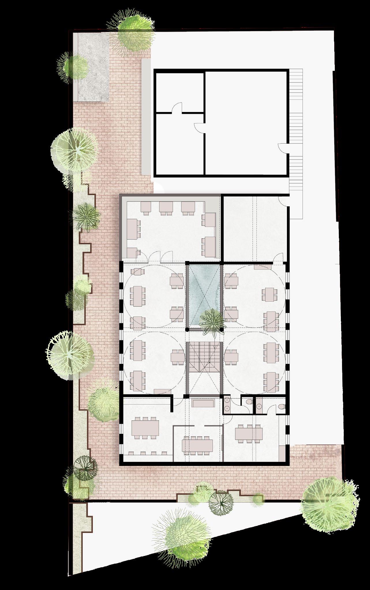 •An open lobby in the North-West corner opens into the expansive restaurant seating area.