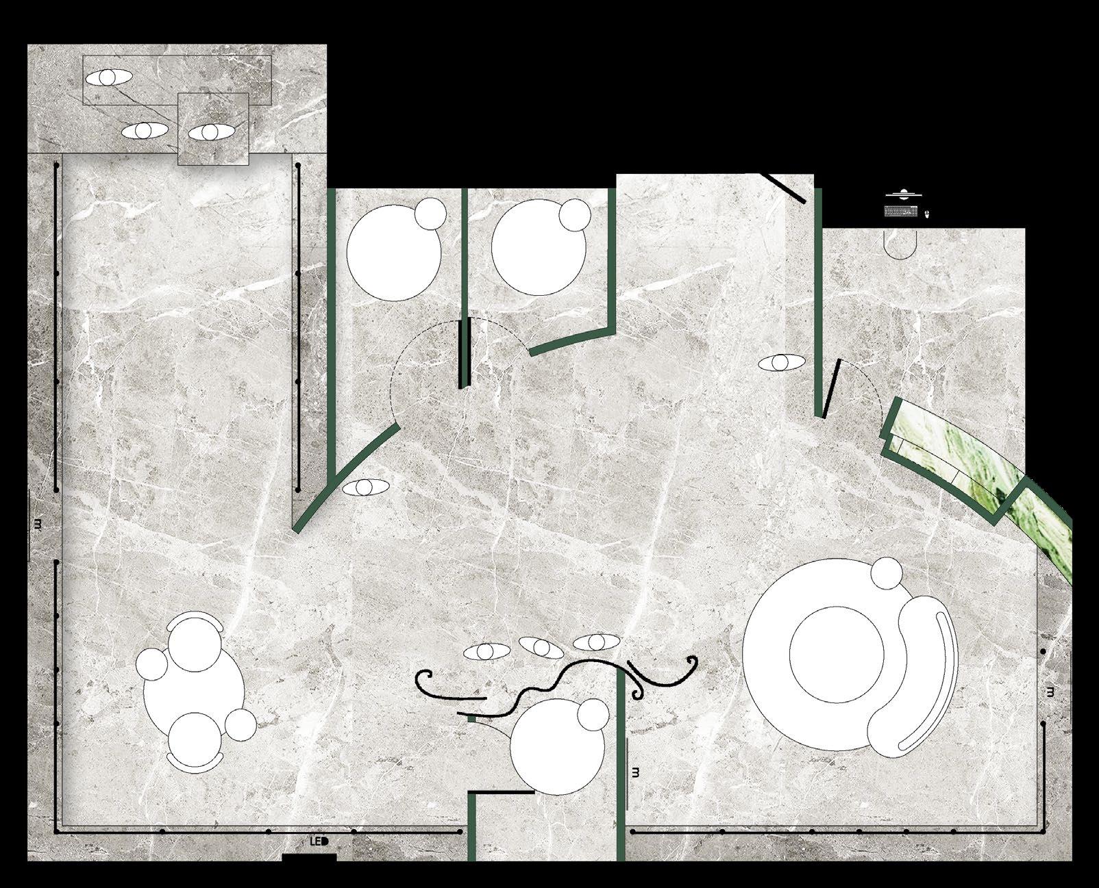 • A minimal colour and material palette was assembled to draw attention to the forms and installations.