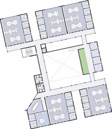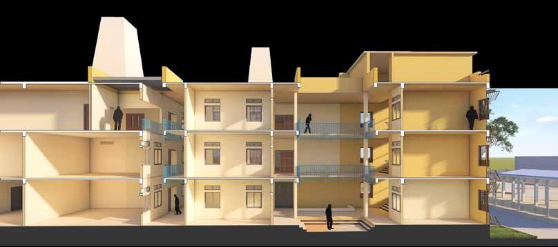 roof is added over the central block for enhancing daylighting. Xeriscaping is done in the niches.