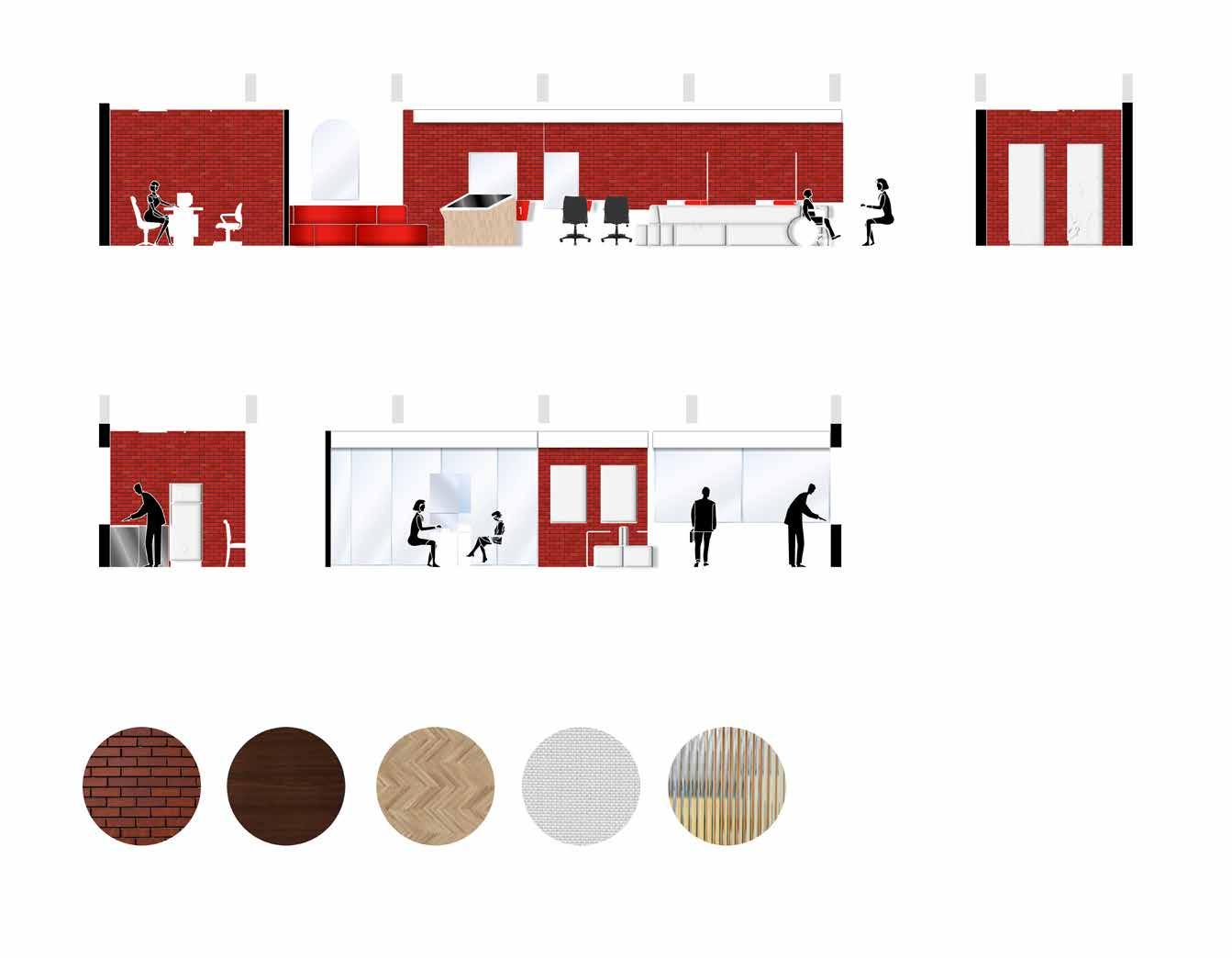 The floor plan and its facilitation has been created keeping in mind the multiple users that are going to use it i.e. managers, employees, common public of different age groups and user needs.