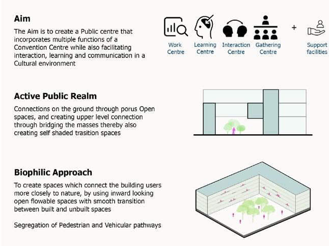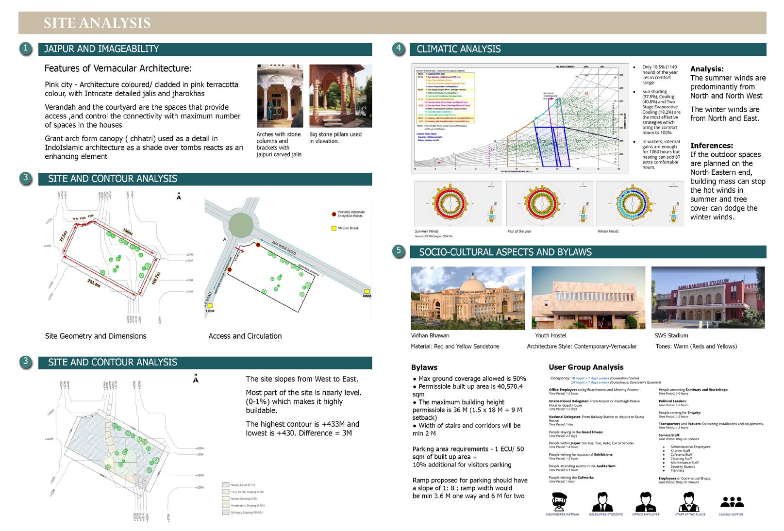 The Convention Centre proposed in the city of Jaipur, Rajasthan, is located on a site context with rich cultural history. the design respects this by speaking the same vernacular vocabulary, using locally sourced materials such as sandstone that makes it blend in with the surrounding historical buildings.