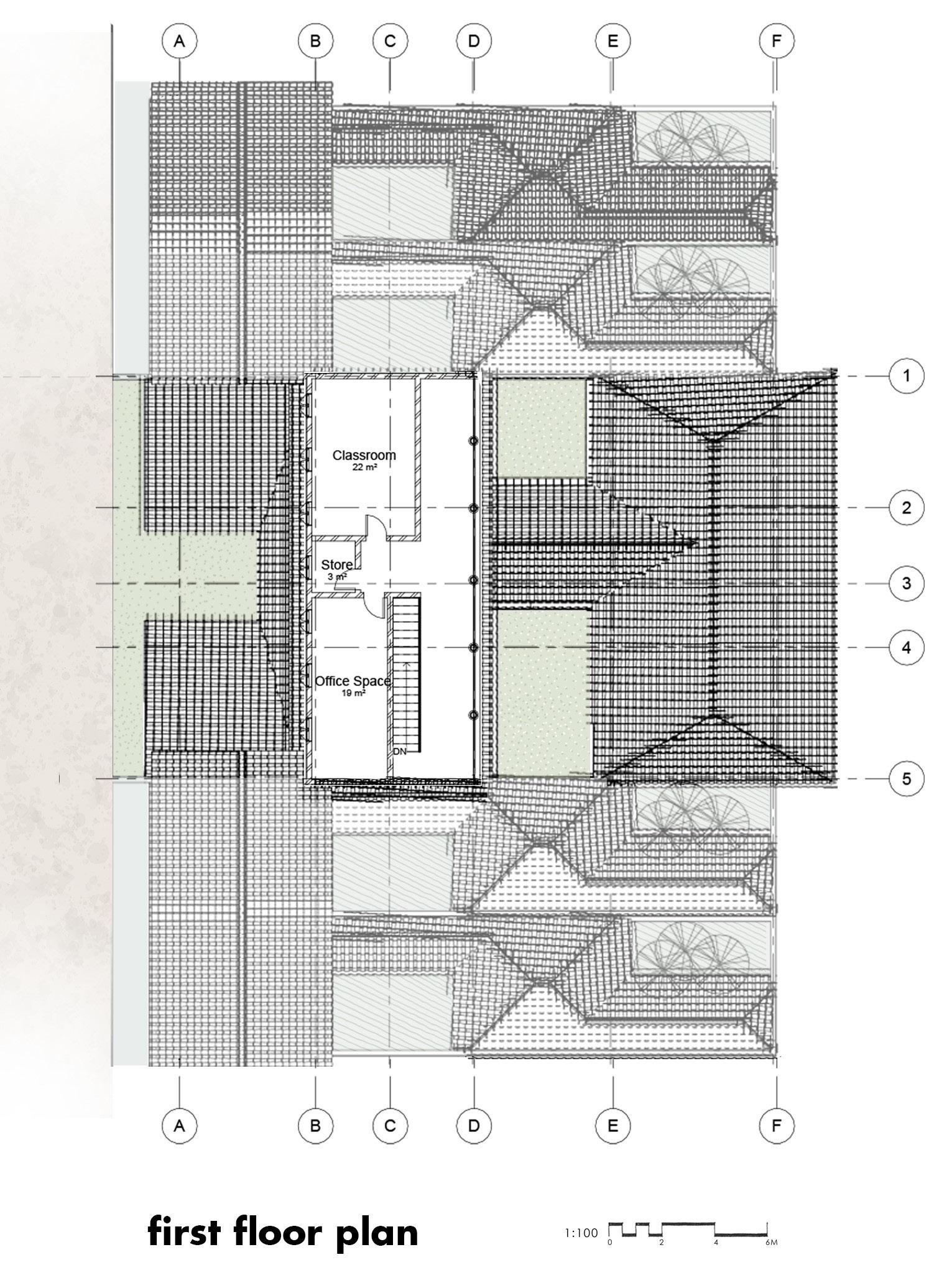 The training centre is a combination of indoor and outdoor spaces, with activities that spill out on to the outdoors. The various zones are connected by various experiential walkways and gathering spaces that are filled with activity.