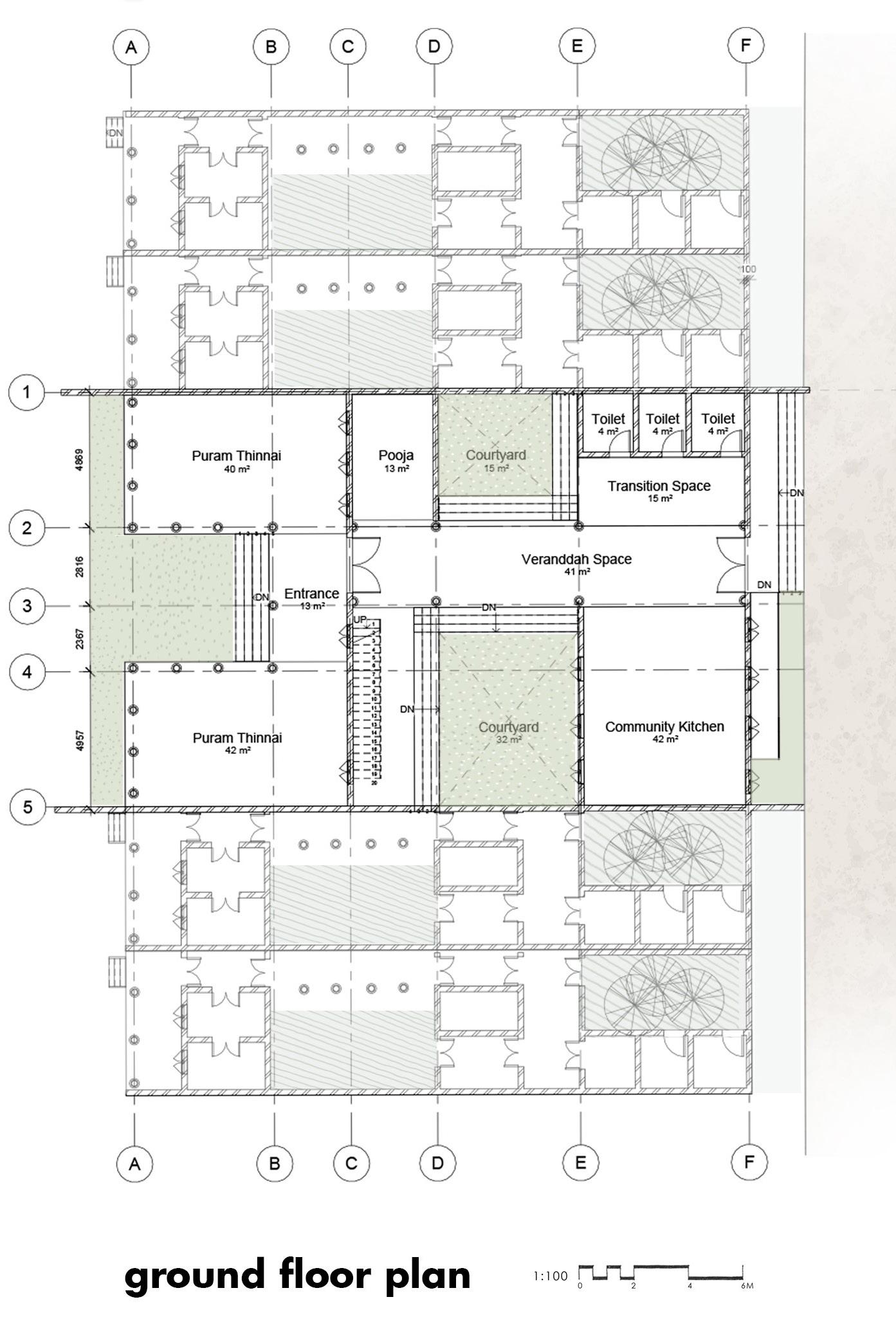 a community centre designed in the heart of an agraharam to bring the local community together. It is designed to bring people together and encourage discussions aand conversations amongst the community members. It creates a platform for showcase of talents and also acts as a learning space for the community with ample classroom space.