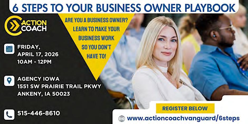 ActionCOACH VanguardApril 6 Steps to Your Business Owner Playbook 10:00 AM - 12:00 Noon 551 SW Prairie Trail Pkwy