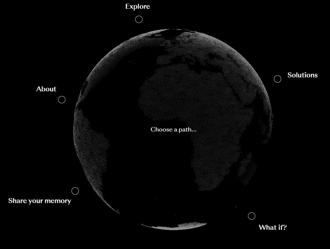 The project is about nature and our relationship to it and in hopes of presenting new ways to see a different outcome for us and for our planet.This is a memorial ( making one aware of all that we are loosing) and yet focused on the advocacy (Sharing our duties to help) and interaction(person explores privately yet one shares and explores and contributes a memory of their own through website)
