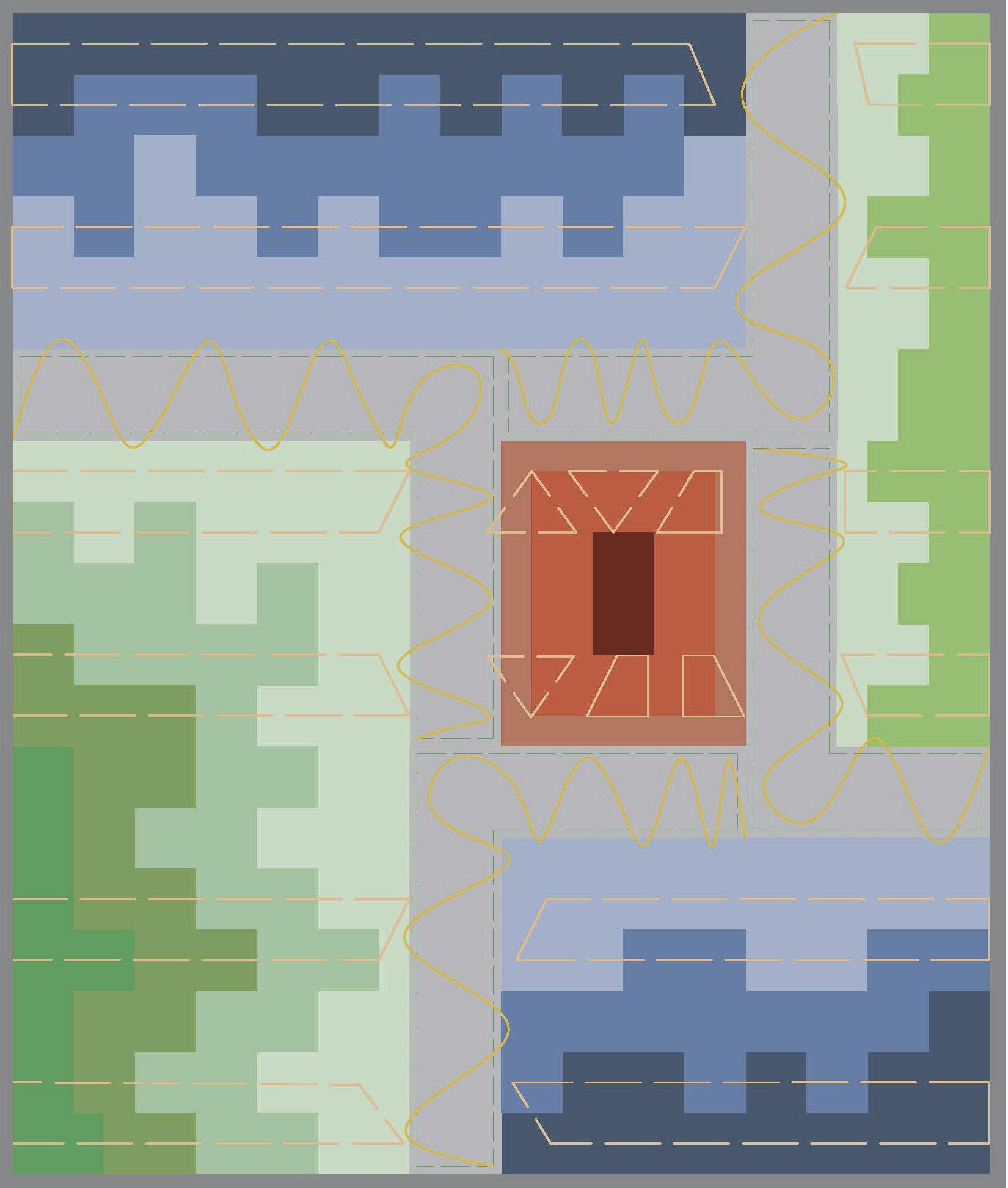 As the design intends to explore the earthscape, it is important to study the contours and the vegetation on site. The size of the color represents the grading elevation with the larger circle resembling the steep slope.